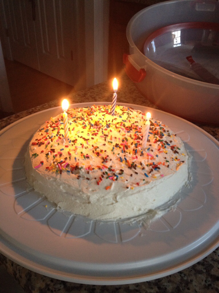 As you can see, it makes the perfect birthday cake! I think the lit candles nicely highlight the decorative sprinkles. I am of the opinion that you can never have too many sprinkles.