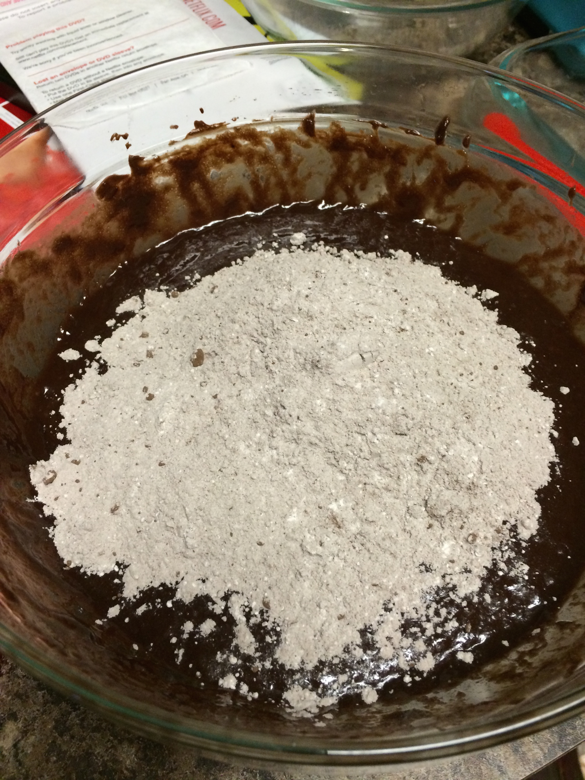 First, I mixed together the dry ingredients. Nothing out the ordinary here, except for dark cocoa powder instead of regular.