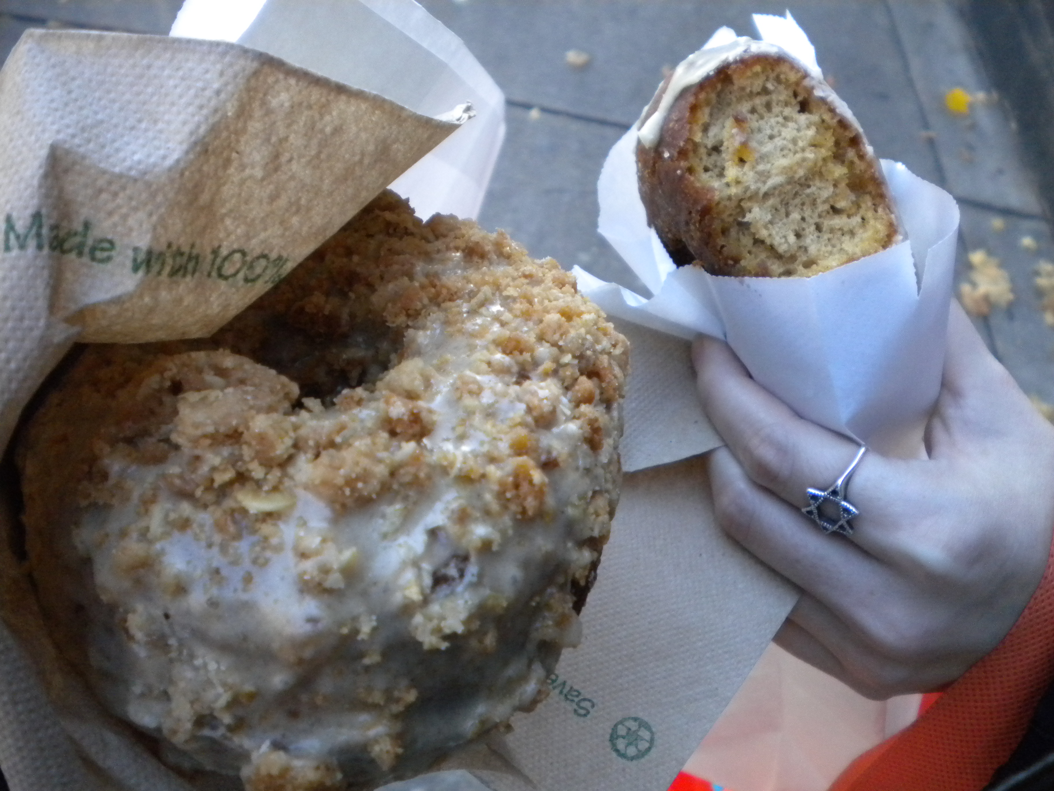 I got an apple crisp donut, and Shaina got a pumpkin! Mine was incredible, with bits of crumb topping liberally dotting an apple cider donut.