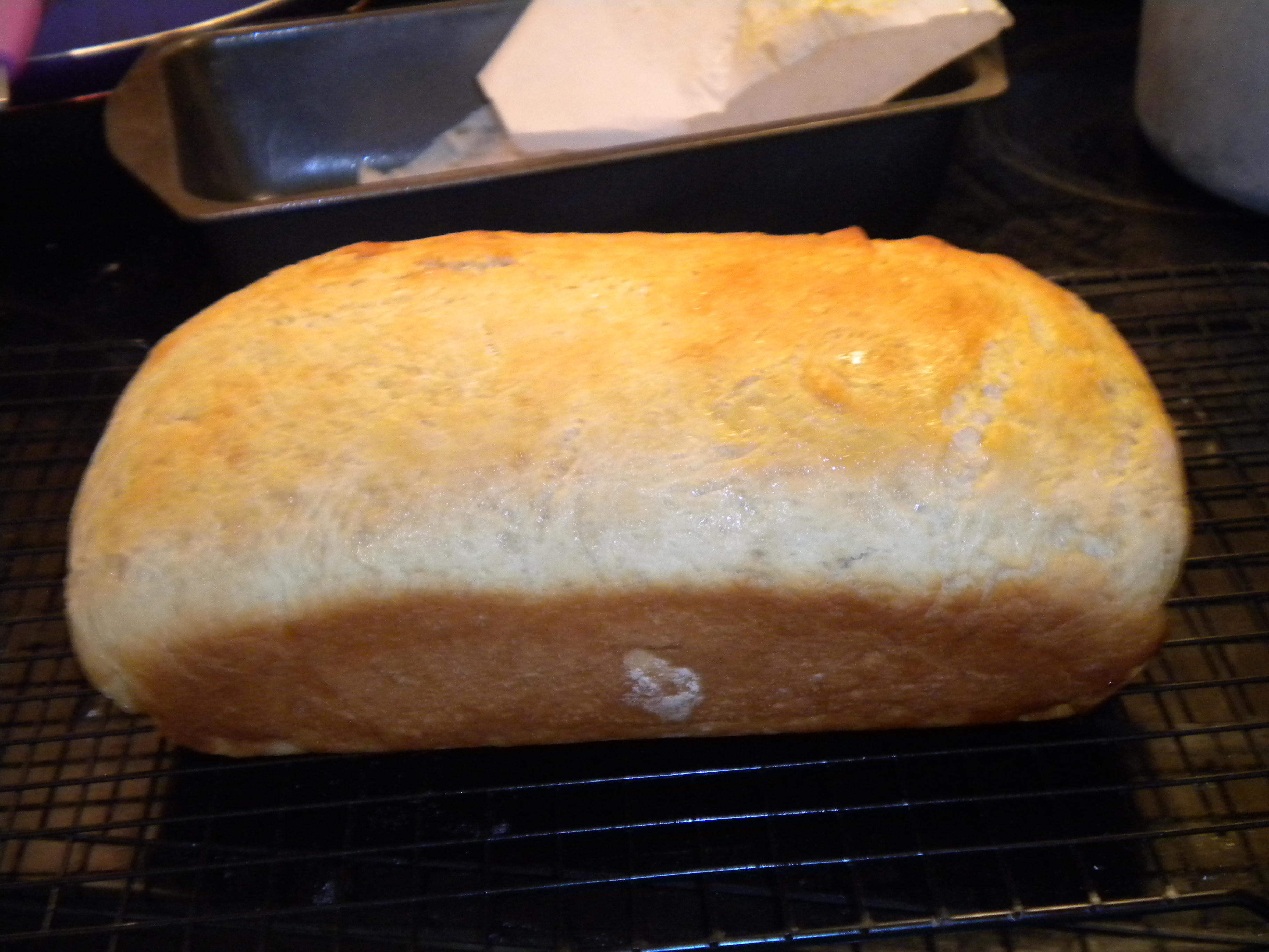 The recipe called for bread flour, although we didn’t have any, so we used all-purpose flour instead. It still came out good, so I’m going to have to try making it with bread flour to see what the taste and texture difference is, if any. It’s perfect bread for almost anything, with a hint of sweetness from the honey making it especially good for French toast. At least, that’s my assumption! I’ll have to find out in a few days.