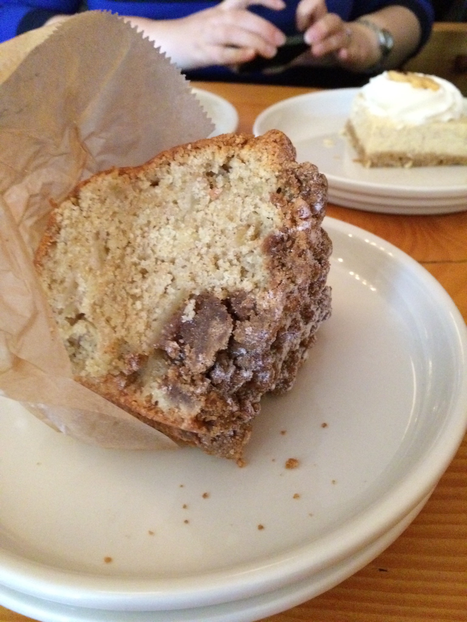 My second choice was a piece of apple Buckle. I didn’t know it was apple until I took a bite, but I can’t resist anything with crumb. This cake reminded me that it had been far too long since I’d had any kind of coffee cake, much less a good coffee cake. There was just the right amount of apple in it – enough so that it wasn’t just a plain cake, but not so much that it overwhelmed the crumb, which everyone knows is the best part.