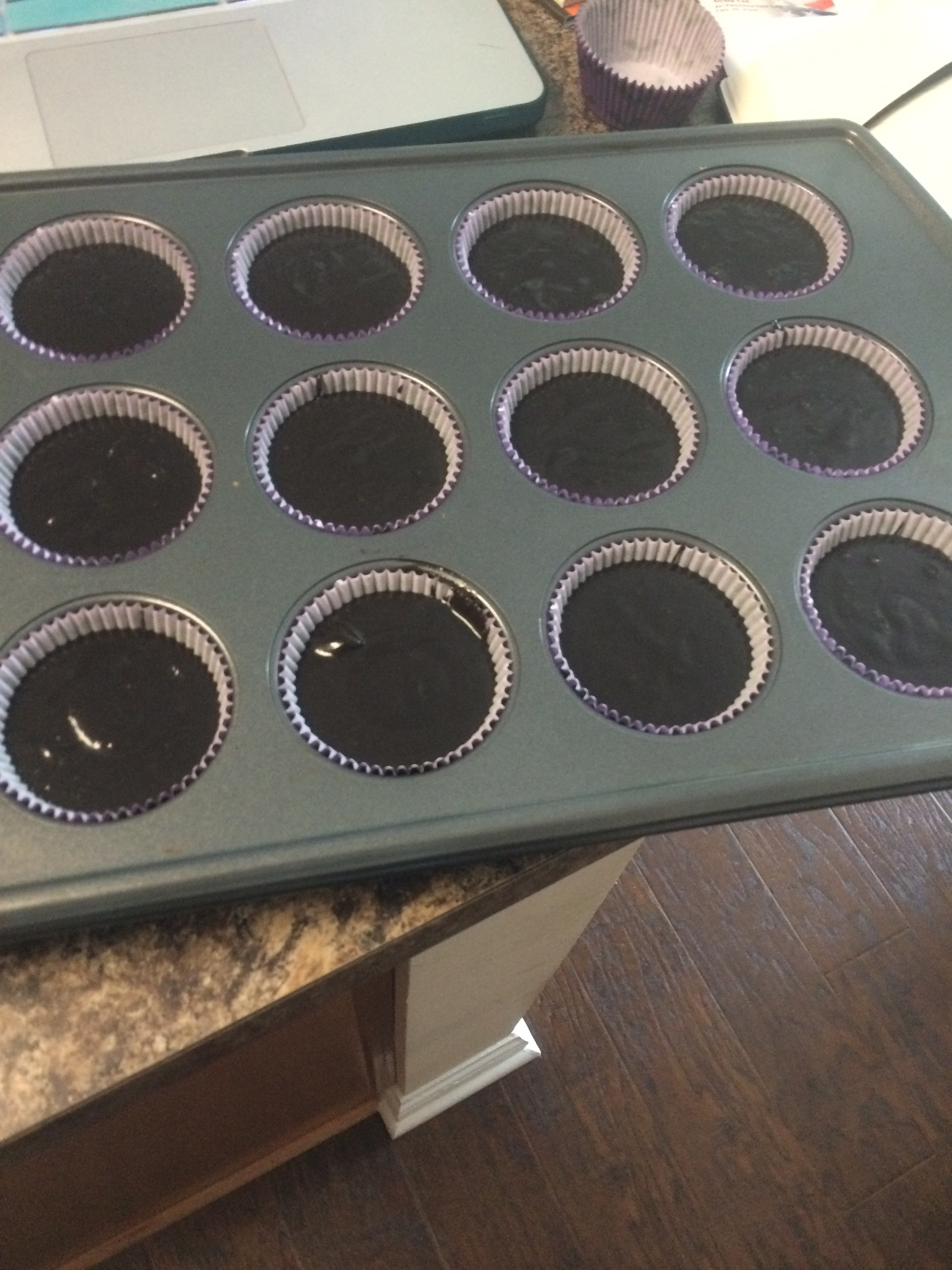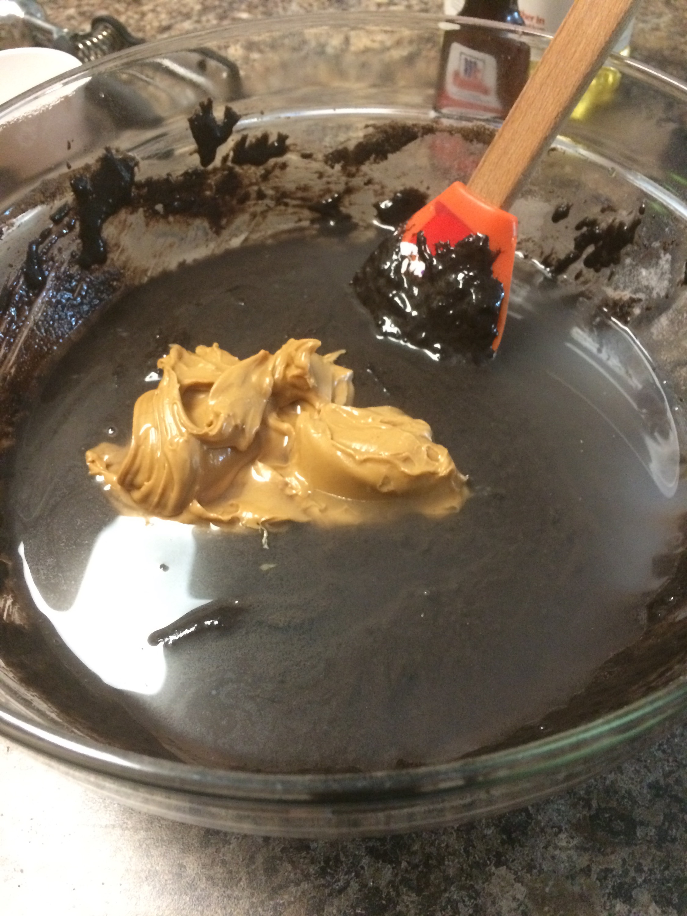 Next is the peanut butter. You can see that the mixture looks a lot like brownie batter at this point, rather than cupcake batter. That will be fixed in the next step.