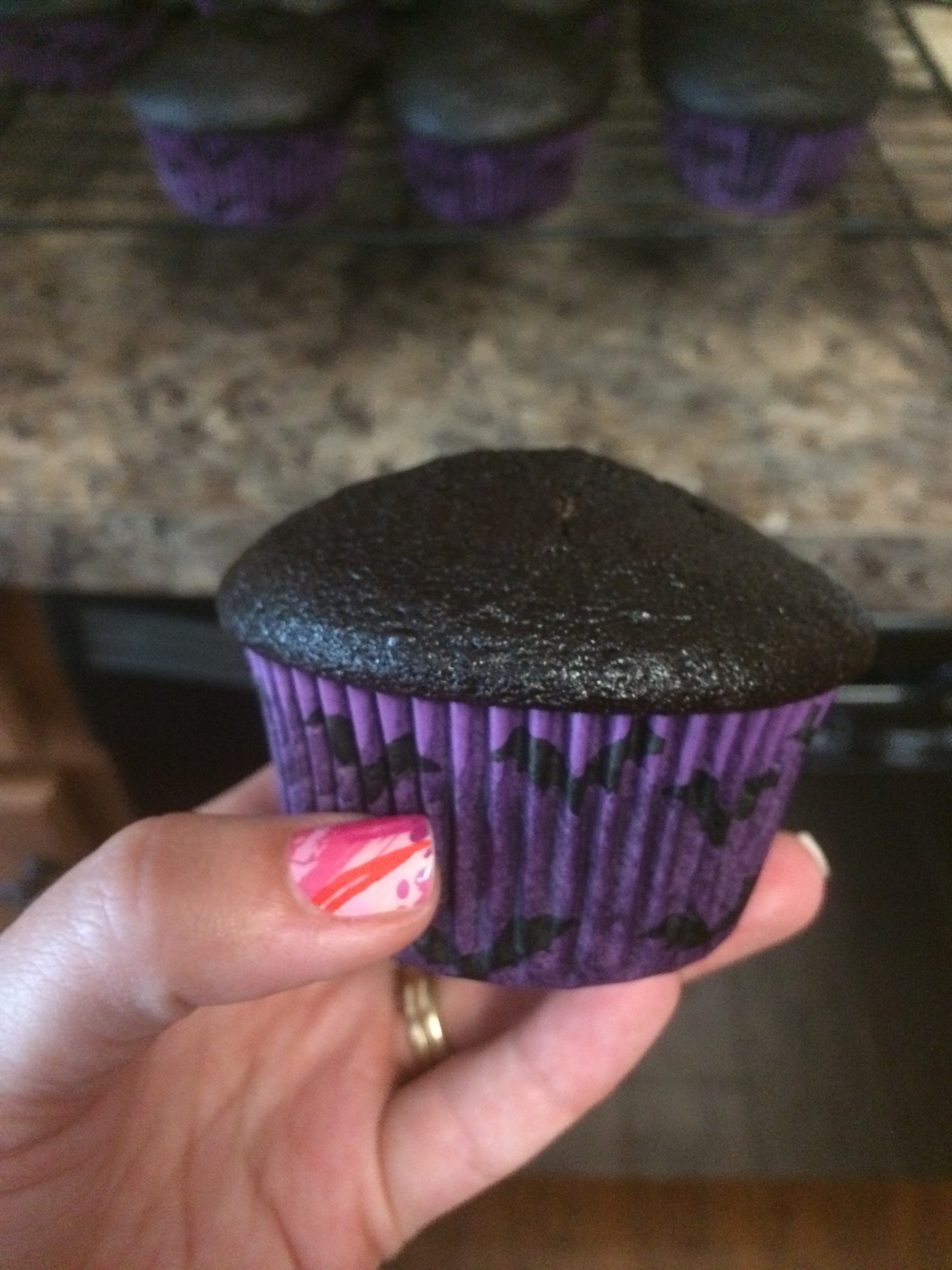 Scoop batter into lined cupcake tins about 2/3 full, then bake 18-20 minutes at 350, rotating trays halfway through.